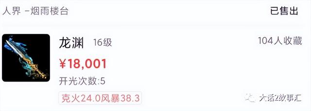 这把成交价格为18000元的十六级武器全貌,底子是忽视抗风30.6,炼化效果灵性加9,强力克火加24,风系狂暴几率加18,属性需求-10%,非常完美的炼化属性,单单是这样的极品炼化都能卖不少钱了。炼器效果也洗出了风系狂暴几率加20.3,可惜的是出了强力克水的属性。不然可能直接上到天价了。