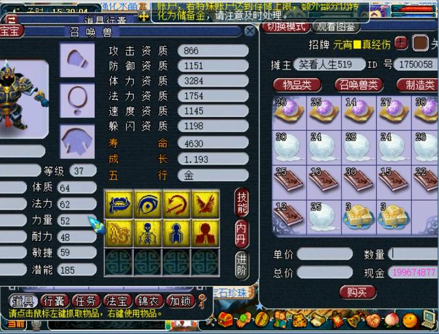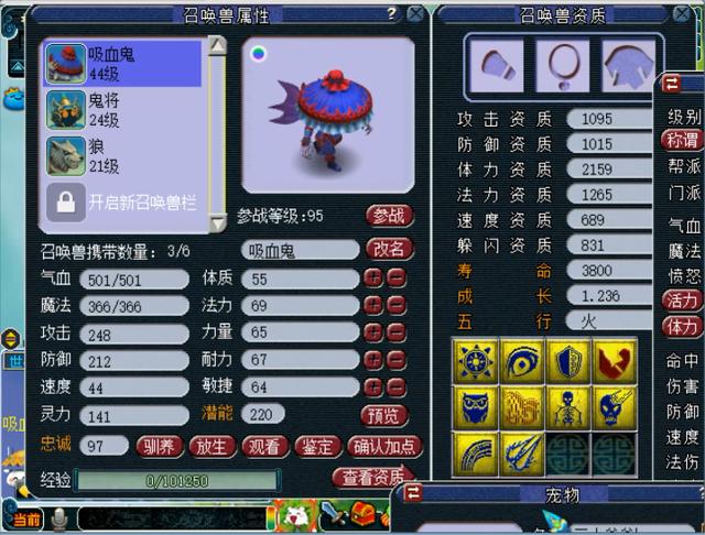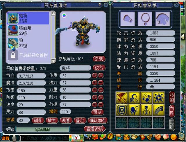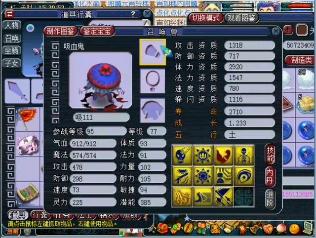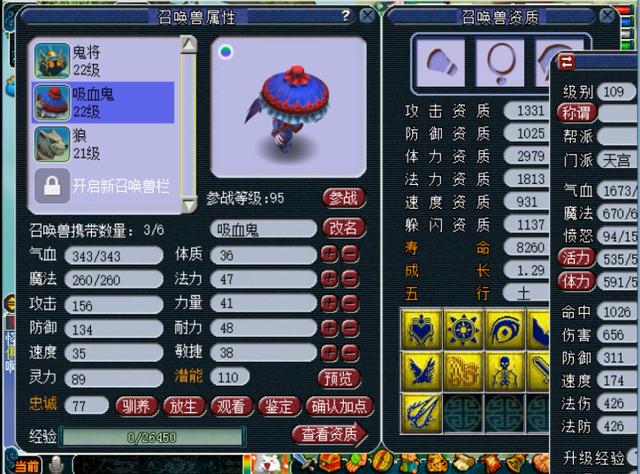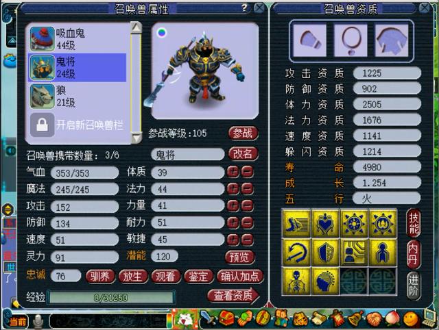 接下来就是买的的那只鬼将回炉,鬼将成长虽然不是很高,但是吸血鬼不低,如果合出鬼将,成长肯定可以提一提!其他的资质,都还凑合!