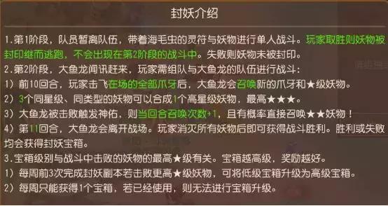 以上,就是灵儿目前摸索总结出来的全新封妖玩法的部分攻略,还有不足之处请在座各位小伙伴们多多指教。如果你还想知道什么有关于封妖玩法的相关内容,可以尽情给灵儿留言,灵儿会第一时间回复大家的!