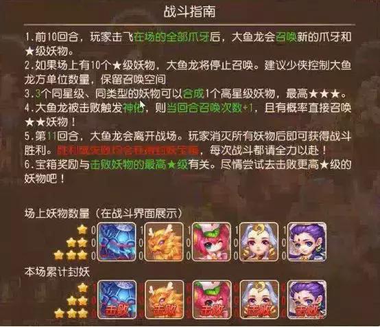 2、击杀大鱼龙的同时,击败所有爪牙,大鱼龙才会多召唤+召唤二星妖物;