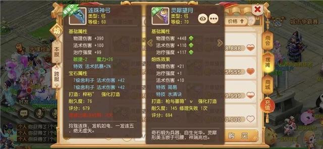 但遗憾的是,机会不等人。当他在想怎么赚金币的时候,他中意的那把70简易特技弓被别人买走了。他只能退而求其次,买下了一把70简易高法伤弓,这把武器只差3点法伤就到满法伤。这把武器虽说法伤高,但还是没有刚才那把武器好。