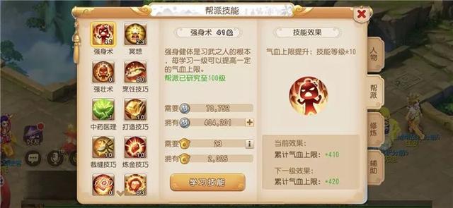 这号帮派技能有点扎心,强身术和冥想等级都不高,只有烹饪技巧刚好点到60可以烹饪出蛇胆酒。好在前号主还刷了2000多点帮贡,算是造福接班人了,这2000多点帮贡能省去新号主不少时间呢。