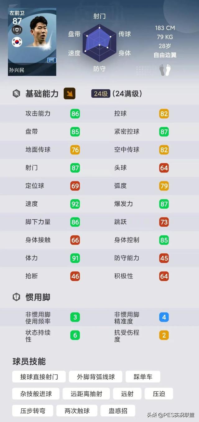 球员简析:孙兴民最大的优势就在于双速和体力,而在本周D状态的掣肘之下,他的这两项属性将会泯然众人,再加上本身就比较普通的盘控能力,整体水平明显不如一些顶级金球给力。