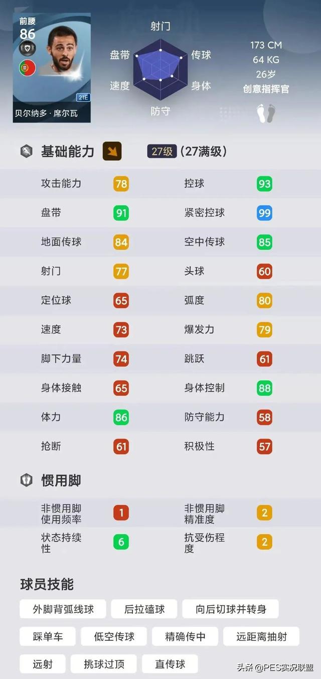 球员简析:B席的创意指挥官风格,跑位本来就不如前插攻击手积极。而在D状态削弱的情况下,他的短板暴露得更加明显。