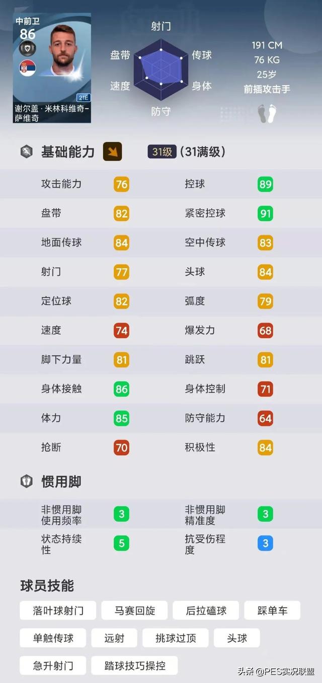 其次是作为进攻核心,处于前腰位置的米林科维奇,本周实际双传水平大概率低于85,这也就意味着他的单项数据将比顶级球员低10点左右,显然极为被动。