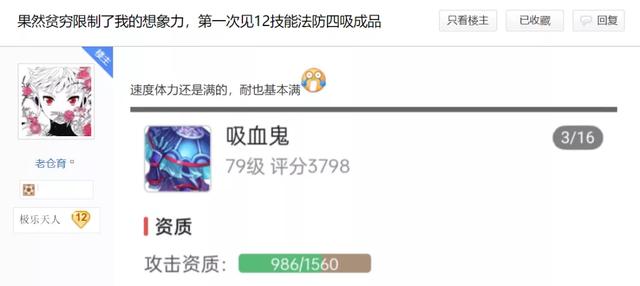 围观玩家看完楼主的分享后纷纷表示大开眼界。大家都觉得,想要培养出一只如此极品的配速吸血鬼可谓困难重重。
