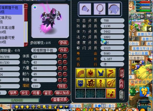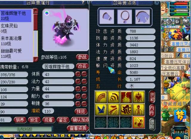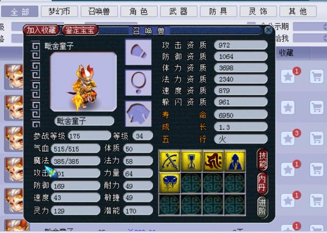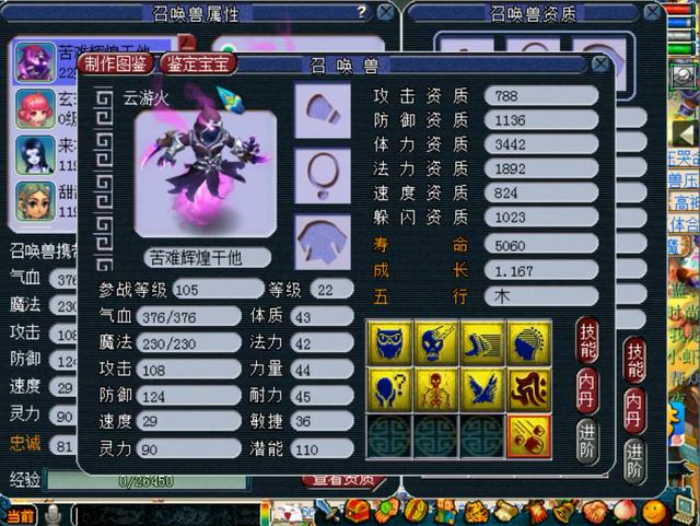 接下来回炉,最好的就是找画魂回炉了,不过画魂天生必带高鬼魂,这样的话会少一个技能,而泪妖毕竟有点低端,所以找了一只5技能须弥童子!