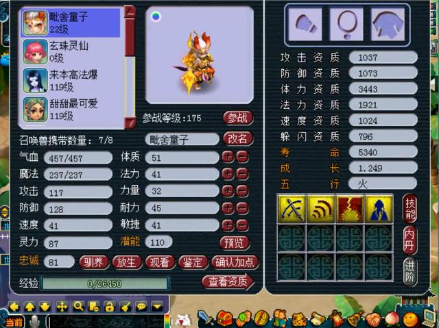 接下来是这只9技能须弥云游火,它的造型可以说比鬼将都威武霸气,不过资质同样感人!