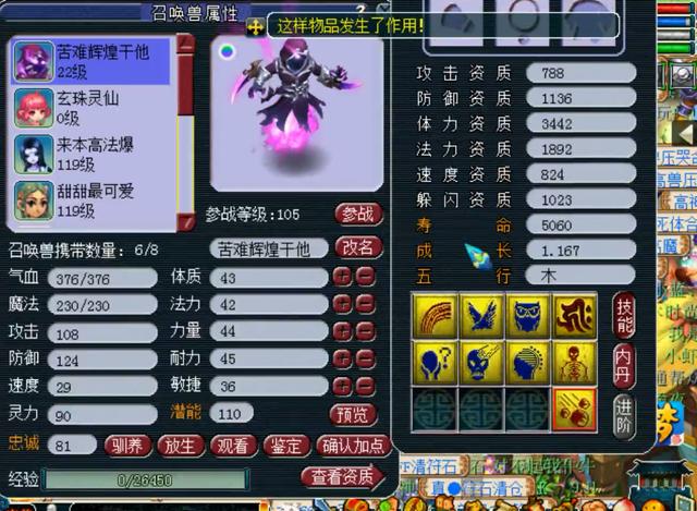 高级法术暴击掉了感知,漂亮!只剩一个飞行和高级鬼魂了,如果是普陀用,或者手中有普陀号,高级鬼魂还算是有用的技能!