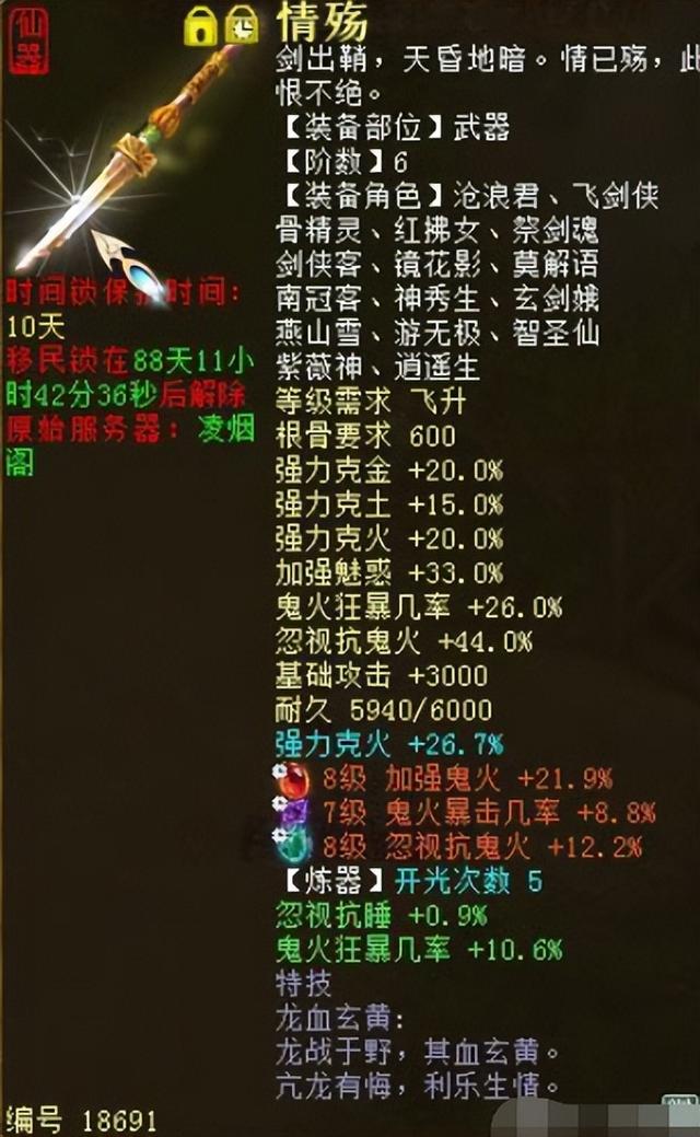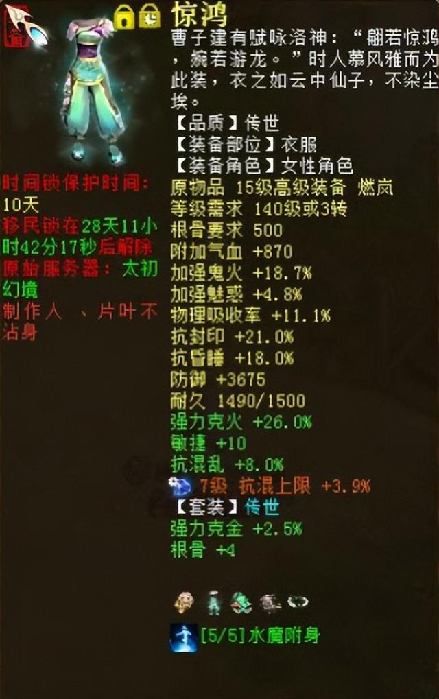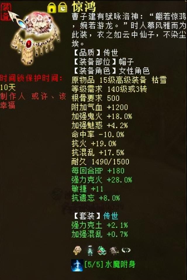 一玩家晒出自己打造的六阶惊鸿克火女鬼,目前这套装备的一些细节还没弄好,正在逐步的完善中。
