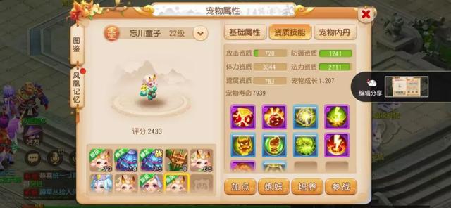 在吸取了第一次合宠的经验以后,号主开始重视这第二次合宠。想要提升忘川童子的资质,那么副宠的资质与成长都要非常优秀才可以,所以这次号主便找来一只5技能115级携带的菱心仙子用来合宠。