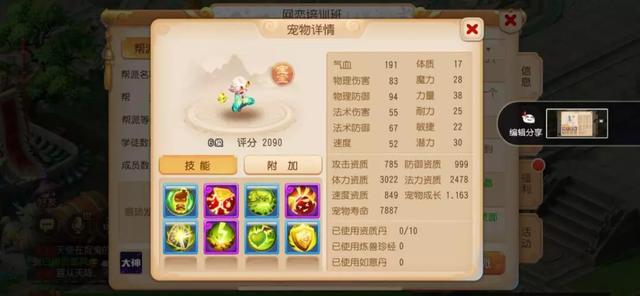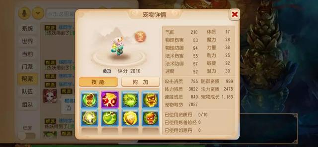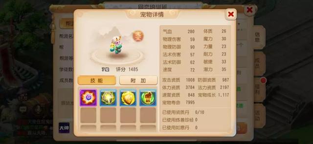 一发合宠点下去,果然是有奇迹发生!一只带有上古灵符的8技能忘川童子闪亮出炉,但是我们再仔细的看这个资质...体力资质3022,法力资质2478,防御资质999,成长也仅有1.163,果然还是不太理想。