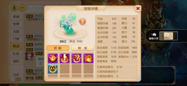 既然神宠已经出世,那么赶紧让我们来欣赏一下。 首先来看资质方面,法力资质达到了2711,成长也有1.207,这两个相比之前提升幅度非常的大,但是唯一遗憾的就是体力资质没有太大的提升。不过我们看到上古灵符这个技能依然存在,在认证法术技能后,技能的选择上也会增加一个,可以多选择一些生存方面的技能来弥补。