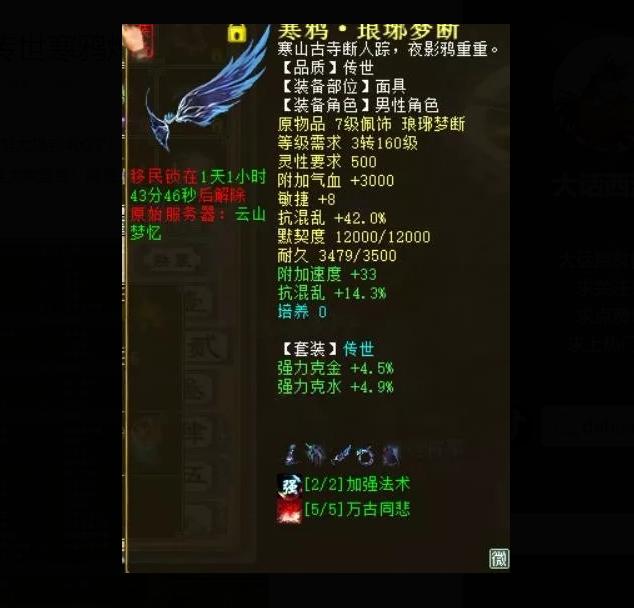 7级传世面具,套装属性克水4.9