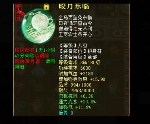 8级护身符,这个属性基本是完美了。