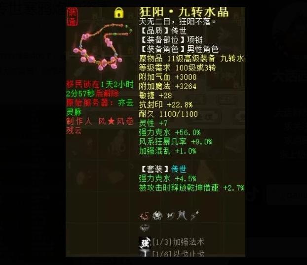 11级项链,克水56+风狂暴几率9,套装克水4.5,相当给力。