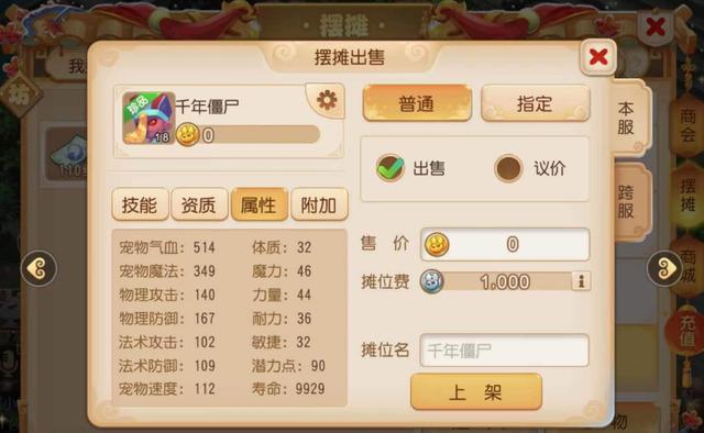 大家都知道,在精锐组中千年僵尸是目前大火的宠物,在激活了专属装备效果后,配合高级鬼魂技能走“永动机”路线,在战斗中表现非常强势。不过遗憾的是。在摆摊商城中的多技能千年僵尸商品却并没有多少,所以楼主的这只7技能千年僵尸胚子的价值还是非常高的。