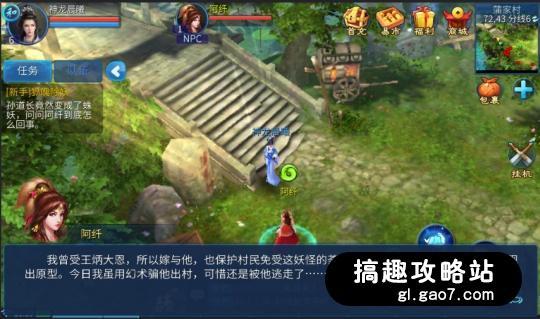 整个新手剧情,大概就是蒲家村的村民接二连三的病倒了,村长让主角问问站在三步之外的孙道长这是怎么了,道长掐指一算告诉让主角告诉远在三步之外的村长不要担心,这一切都是阿纤干的。不过,我想主角永远也搞不清楚为啥一个小小的村长和道长会有这么大的派头,离这么近都要让他传话,好歹我们也是大战过姥姥的人啊。。。