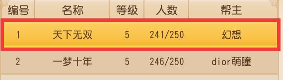 这个帮派厉害了!为什么说他厉害呢?因为这个帮派所在的服务器就是天下无双!帮派名和服务器名一样就有种服务器霸主的既视感——“我是天下无双的老大,你有什么事直说”这样,还能说什么呢?只好给大佬递茶!