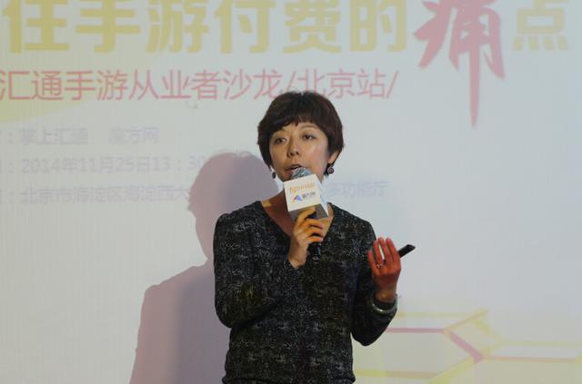 掌上汇通创始人兼CEO谭晶晶随后与到会嘉宾共同探讨对于手机游戏支付游戏开发商的需求,并结合掌上汇通的业务情况讲述如何去找到手游付费的痛点。
