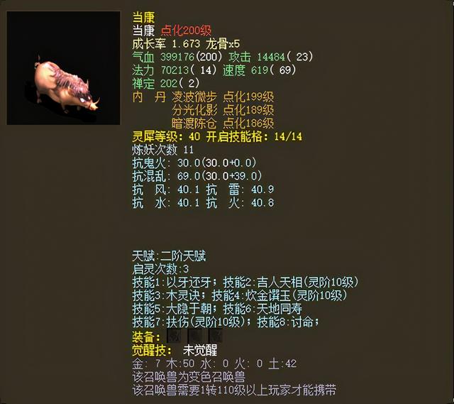 除了拨浪鼓之外,当康也是一个不错的选择,经常可以看到比斗场上,有玩家一口气带一排血当康,当康除了血厚之外,自身的被动技能增加自身的反震反震几率和反震伤害,有句俗语说得好,好白菜让猪拱了,当康拱起来也是一个狠角色,这也是大家为啥害怕遇到对手带当康,尤其是双方都带当康,那就且看6只猪互拱好了。
