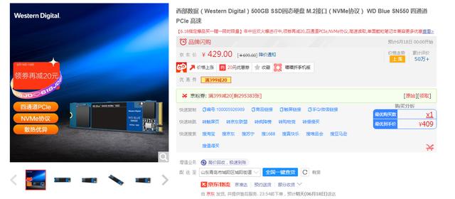 硬盘我推荐先购买一块西部数据的 SN550 500GB NVME 固态硬盘,不需要分区,等后期素材放不下了,再买两三块1TB SATA固态就行,这样相比使用机械硬盘对工作效率提升是显而易见的。