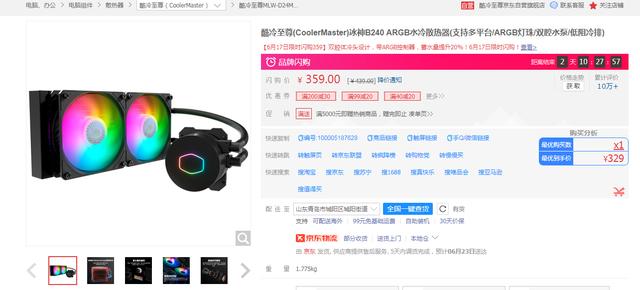 这里我推荐一款比暴雪 T610P 贵一点的酷冷至尊冰神B240,618旗舰329~359元就能入手。相比一般的水冷散热,这款采用的水冷密封材质更好,更不容易漏液,同时风扇风量最高可以达到62CFM,散热能力相比同价位风冷不算弱。