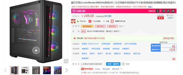 因为预算的限制,机箱买酷冷至尊的MB520非常合适。当你点进链接的时候可能会发现,这不是一个ATX机箱吗?是的,但别慌,推荐这款机箱的主要原因是便宜,618期间最低只需要219元就能入手,而且还支持 ATX、M-ATX和 Mini-ATX 三种规格的显卡;支持安装水冷,内部风道设计合理;无边框设计的钢化玻璃侧板,都是非常厚道的配置。