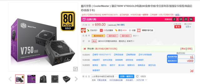 首先推荐酷冷至尊V750GOLD电源,750W金牌电源,转化率是足够的,对于显卡供电线还做了专门的强化,配合十年质保的承诺,还是挺不错的,看着618只需要699元的价格,值得入手。