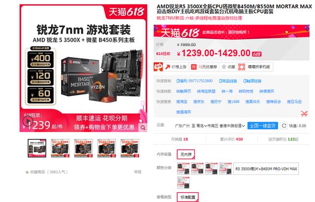 首先处理器升级到 AMD R5 3600,相比3500X 虽然基本没区别,只是加速频率高了0.1GHz,但是多了超线程技术。6核心12线程的3600相比3500X 在视频剪辑和直播上有更大的优势,如果你需要剪辑视频,那么直接上3600。