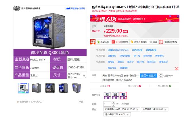 另一款是酷冷至尊Q300L,618期间只需要229元,支持M-ATX和M-ITX 主板。