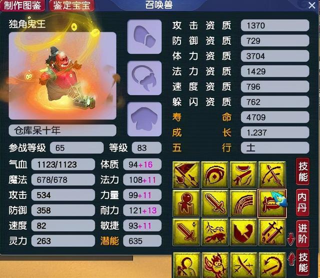 小编感觉上面的这只召唤兽是真的鬼王,因为上面的这只独角鬼王拥有着16个技能,现在已经打成全红了,虽然只有一个特殊技能,但是小编感觉上面的这只召唤师好像没有再提升的空间了,因为16个技能格子的原因,这只召唤师已经将能够打的所有技能都打上了,而且这只召唤兽的资质在目前来看也是不错的,后期还可以吃元宵慢慢的养成。
