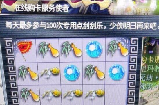 大家每充值1000点专用点就可以获得一张专用点的刮刮乐,上面的这位玩家现在有100张专用点刮刮乐,也就是上面的这位玩家充值了十万点专用点,但是上面的这位玩家将这么多的专用点刮刮乐全部刮完之后并没有获得太多的物品奖励,这里面大多数的道具都是用来洗练宝宝的超级金柳露或者超级净瓶玉露,都不怎么值钱。