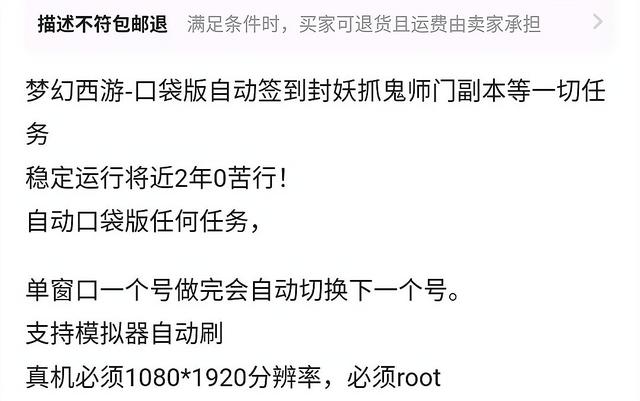 这是小编在某平台上看到的一个关于出售梦幻西游脚本的信息,对方表示他们的脚本可以在梦幻西游口袋版上完美的运行不会被苦刑。