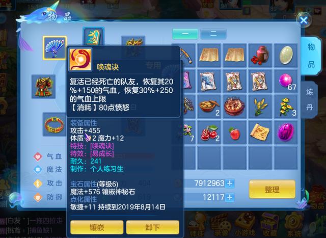 其次就是装备特技、装备特效的携带,除了必备的"愤怒"外,"易成长"越多越好,特技则主要集中在辅助类技能,群体清心、清心术、激励、止戈、绵里藏针等都能有是最好的,其中前三个主要服务于己方的核心输出职业,绵里藏针则可以对敌方进行有效的特技限制,在PVP中是非常实用的。