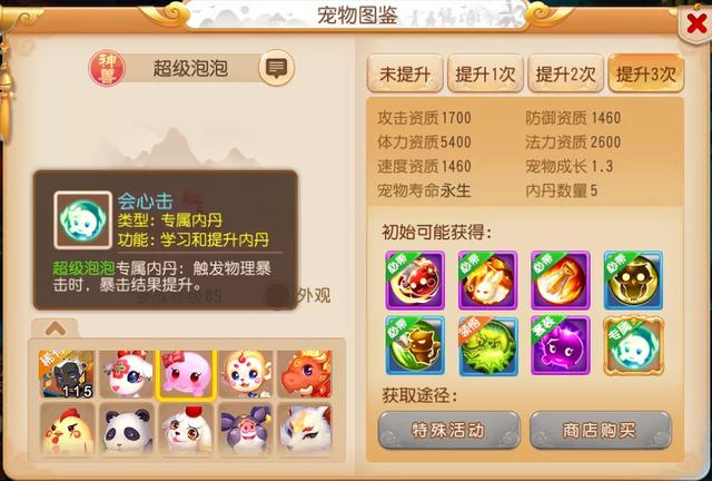 而超级泡泡的专属内丹会心击效果泽更为强大,在进行攻击触发物理暴击时,可以大幅提升暴击结果!
