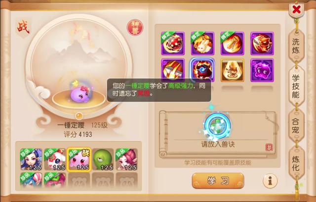 由于超级泡泡是一只攻宠,所以这一次准备打上高级强力技能来提高面板属性,原本以为会是比较刺激的打书过程,但没想到直接一发入魂,成功的将高级强力技能顶掉了低级冥思技能!看到如此好运,楼主便迫不及待的为大家分享自己的喜悦。