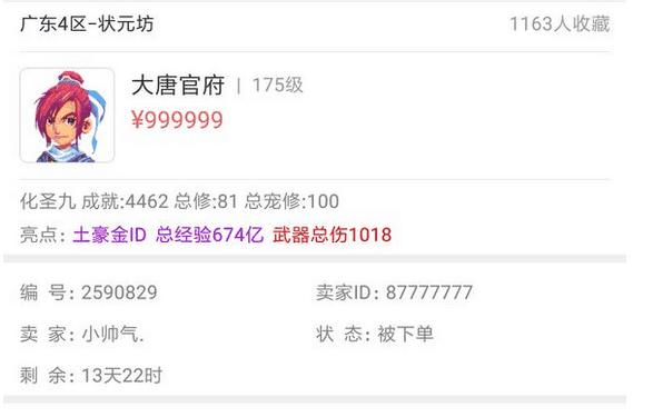第一次看到这个175级大唐官府号的时候是在半年之前了,当时就看到这个号有500多收藏,而且处于被下单状态,让人觉得梦幻西游真的很火,百万的号都有这么多人想要买,后来发现,这个号的确很强,武器总伤害也超过了1000,买走就可以打服战,但是后来发现,这个号似乎得罪了什么人,被下单状态是被人恶意针对的,经常处于被下单状态,让别人只能看,不能买。