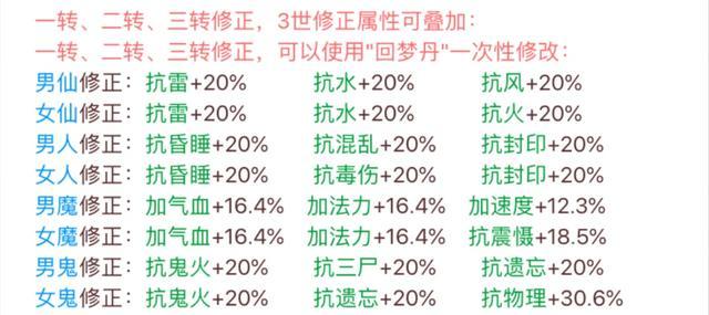 \u200b结合上图,对于每个玩家来说,转生后修正的属性,其实并非绝对就适合转生后的种族角色。如果大家对于转生之后的属性不是太满意的话,可以在在游戏中用回梦丹来修正所获得属性数值。简答的理解,就是洗点重来。