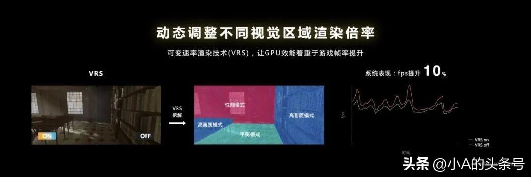 另外,Immortalis-G715还支持了VRS(可变速率渲染技术)。在适配了这一技术的游戏中,同一帧画面里的不同部位,会根据远近、玩家的关注度等因素,采取不同的渲染精度。这样一来,就能在不对游戏画面效果造成显著影响的前提下,为GPU“减负”,甚至能够起到提升10% FPS的效果。