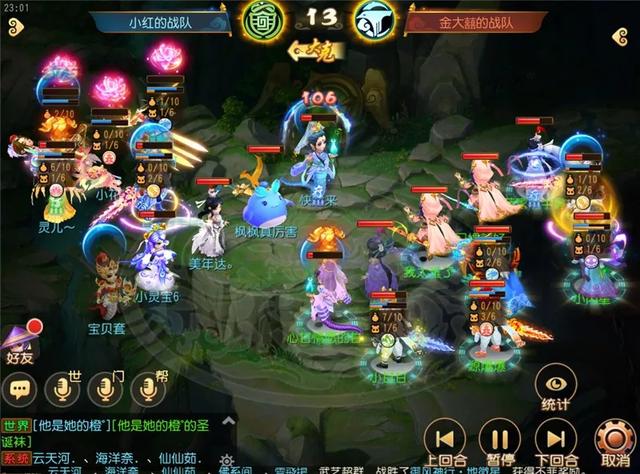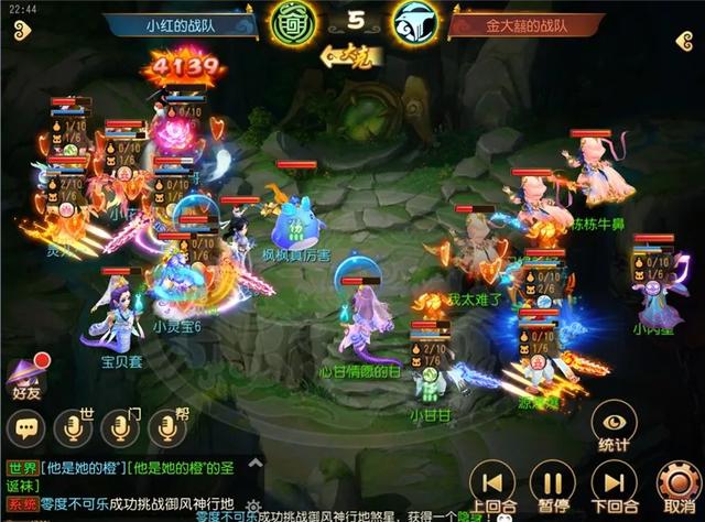 第3回合,对战方化生使用我佛慈悲复活大唐,大唐翩鸿一击观战方大唐打出暴击,4号位攻宠补伤害触发连击,成功击倒观战方大唐。观战方大唐倒地,一定程度缓解了对战方略微紧张的局势。对战方配速宠复活方寸,观战方3号位攻宠守尸未能成功,对战方方寸使用虚幻咒自保。