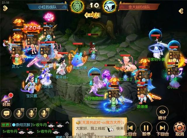第10回合,对战方队伍人物血线偏低,方寸已经倒地。对战方化生被观战方方寸失心,无法为队伍正常回血,对战方普陀使用波澜不惊保护大唐。观战方龙宫群秒触发法连进一步压低对战方人物整体血线,观战方隐攻宠点杀对战方化生触发连击与暴击,对战方化生倒地。好在回合结束后,对战方方寸触发回生经脉自动复活。