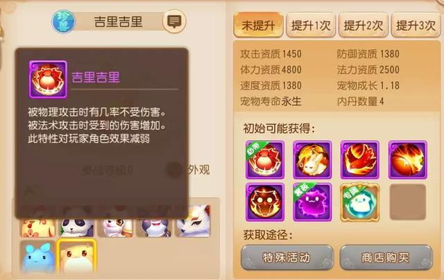 珍兽之所以强大就在于它的特殊绑定技能,其中咕噜咕噜在战斗中被法术攻击时有几率不受伤害,而吉里吉里则是战斗中被物理攻击时有几率不受伤害,这两个核心的技能赋予了它们强大的生存能力。在经过专属内丹与专属装备的加强后,特殊技能的几率将进一步提升,如果在战斗中选择对这两只珍兽集火,一不小心就会浪费当回合的输出,得不偿失。