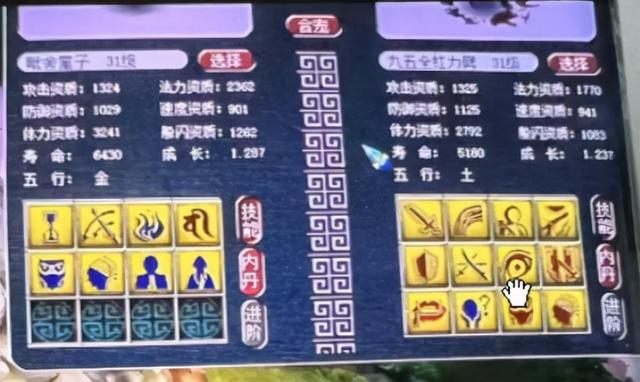 上面这组炼妖的成本是非常高的,因为这组炼妖用了一只12个技能的吸血鬼,而且这只吸血鬼已经快要打成全红了,只留有低级冥思;另外一只是八技能的毗舍童子。吸血鬼是打掉了必带技能的,毗舍童子没有打掉必带技能,所以上面的这组炼妖最多能够合出拥有着20个技能的毗舍童子或者23个技能的吸血鬼,但是有人说,炼妖的时候,召唤兽身上拥有的红书越多,合出来的召唤兽的技能数量就越少,因为高级技能很难被继承。