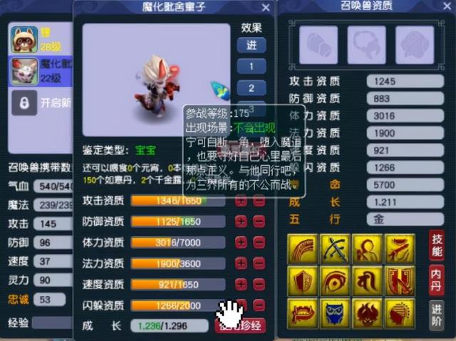 但真实的炼妖却是非常打脸的,因为上面的那组炼妖最终合出来了一只拥有着12个技能的魔化毗舍童子,而且这只魔化毗舍童子还继承了特别多的红书技能,合出来就是拥有着十红的,现在还有连击、感知、无赦魔决这三个可以打书的位置,可以选择的技能就是高级必杀,高级神佑复生和高级冥思。