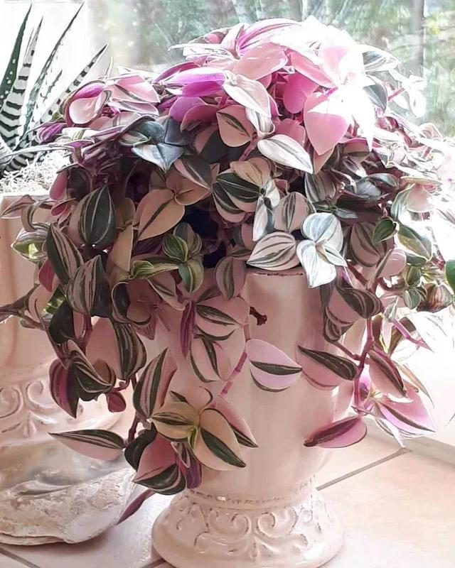整体颜色像油画一样自然过渡,叶片形状也独特有趣,看起来十分具有美感,它的名字就叫做油画婚礼吊兰。