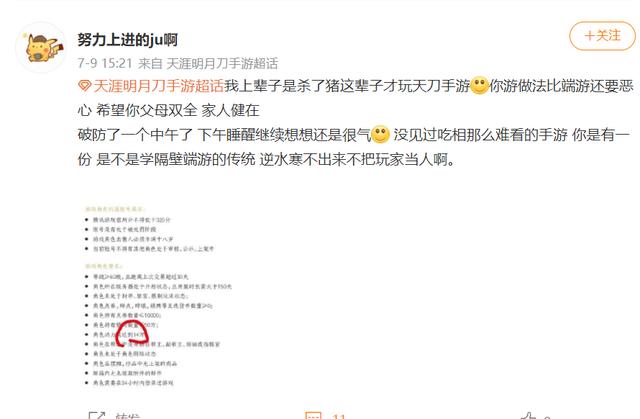 先不说《天刀》手游“画质第一”的名头有多少水分,造成这一情况最主要的原因貌似是《天刀》手游最刚出的周年新版本,满心想要玩到新剧情、新玩法的玩家,等来的确是全新花式的“氪金内容”,不仅零氪玩家接受不了,氪金土豪也是满肚子怨气,于是乎就开始了大规模的卖号弃坑。