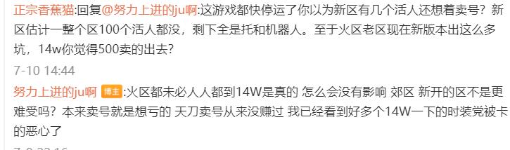 结果《天刀》手游官方“技高一筹”,从根本上解决了这一问题:出新规定表示14万战力以上的账号才可以上架官方平台交易。要知道即便是在老区也只有少数大佬玩家才能拥有如此战力,更别说新区了!这下想卖号的玩家瞬间傻眼,回过神来后更怒火中烧,甚至有土豪大佬直接在贴吧送号,引发了又一场“弃坑潮”。