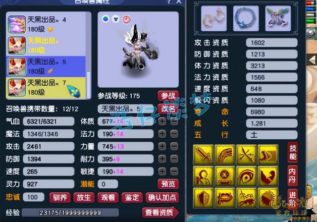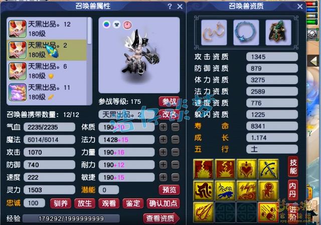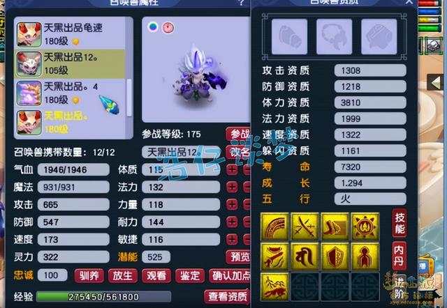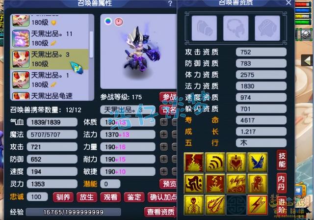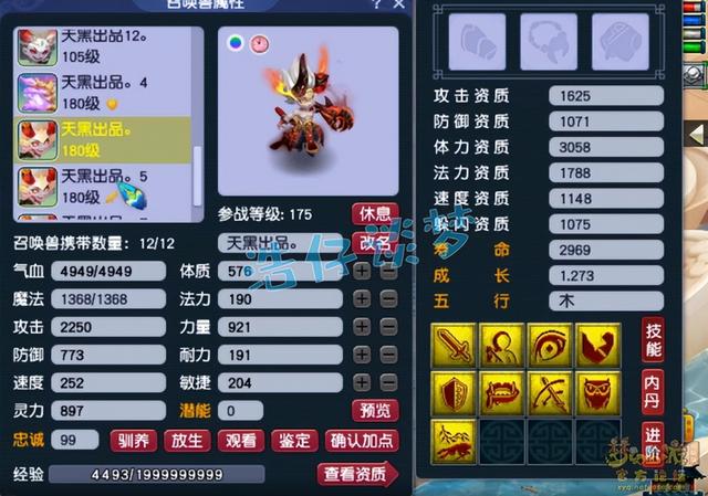11技能耐攻力劈壁垒魔化童子,这只应该是胚子打成的,资质需要养两年。