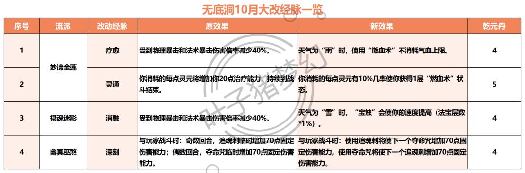 本次对于无底洞改动主要集中在“摄魂迷影”流派上,这个流派在雪天时可以使用“宝烛”提升速度,一层提升1%,满层可以提升12%,算上流云诀的话,可以提升22%的速度,比高敏卡还多2%,足以和女儿村一争高下。